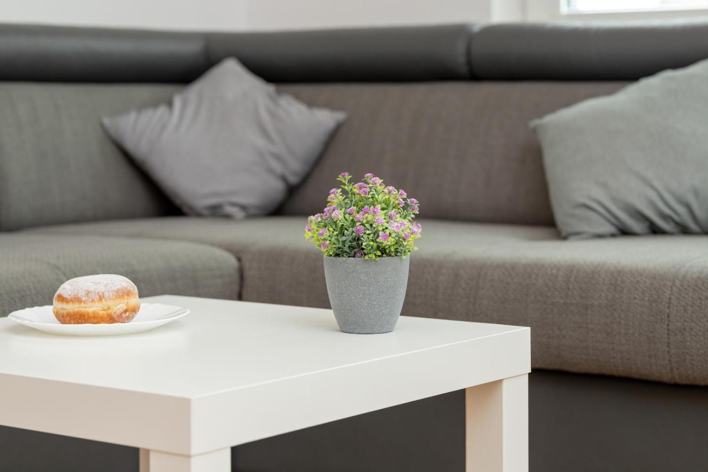 Oferta apartamentu obejmuje sypialnię (1), salon, aneks kuchenny z pełnym wyposażeniem, w tym lodówką i ekspresem do kawy, a także łazienkę (1) z bidetem oraz bezpłatnym zestawem kosmetyków. W apartamencie zapewniono ręczniki i pościel.