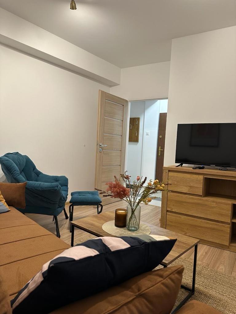 Apartament z 1 sypialnią. The kitchen is equipped with a refrigerator, kitchenware and a microwave. The apartment provides a washing machine, a private entrance, soundproof walls, a tea and coffee maker and a flat-screen TV. The unit offers 1 bed. Apartament - 4 osobowy. Powierzchnia pokoju ok.: 41 mkw.