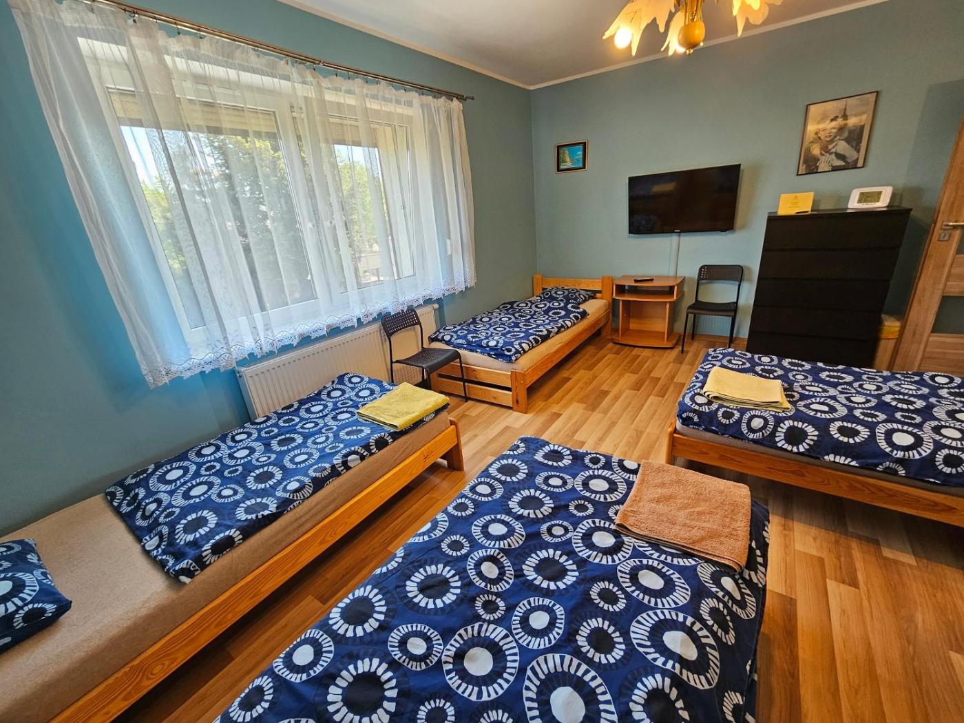 Pokój Czteroosobowy. This quadruple room offers a shared bathroom, and a wardrobe. Guests will find a stovetop, a refrigerator, a dishwasher and kitchenware in the well-equipped kitchen. The quadruple room also includes a barbecue. The quadruple room features a washing machine, a tea and coffee maker, a dining area, a flat-screen TV, as well as garden views. The unit has 4 beds. Pokój Czteroosobowy - 4 osobowy. Powierzchnia pokoju ok.: 25 mkw. ;