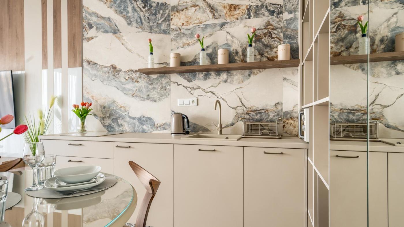 Apartament z 1 sypialnią. This air-conditioned apartment features 1 living room, 1 separate bedroom and 1 bathroom with a shower. In the kitchenette, guests will find a stovetop, a refrigerator, a dishwasher and kitchenware. This apartment has a coffee machine, a seating area, a flat-screen TV and a balcony. The unit has 2 beds. Apartament - 4 osobowy. Powierzchnia pokoju ok.: 39 mkw.
